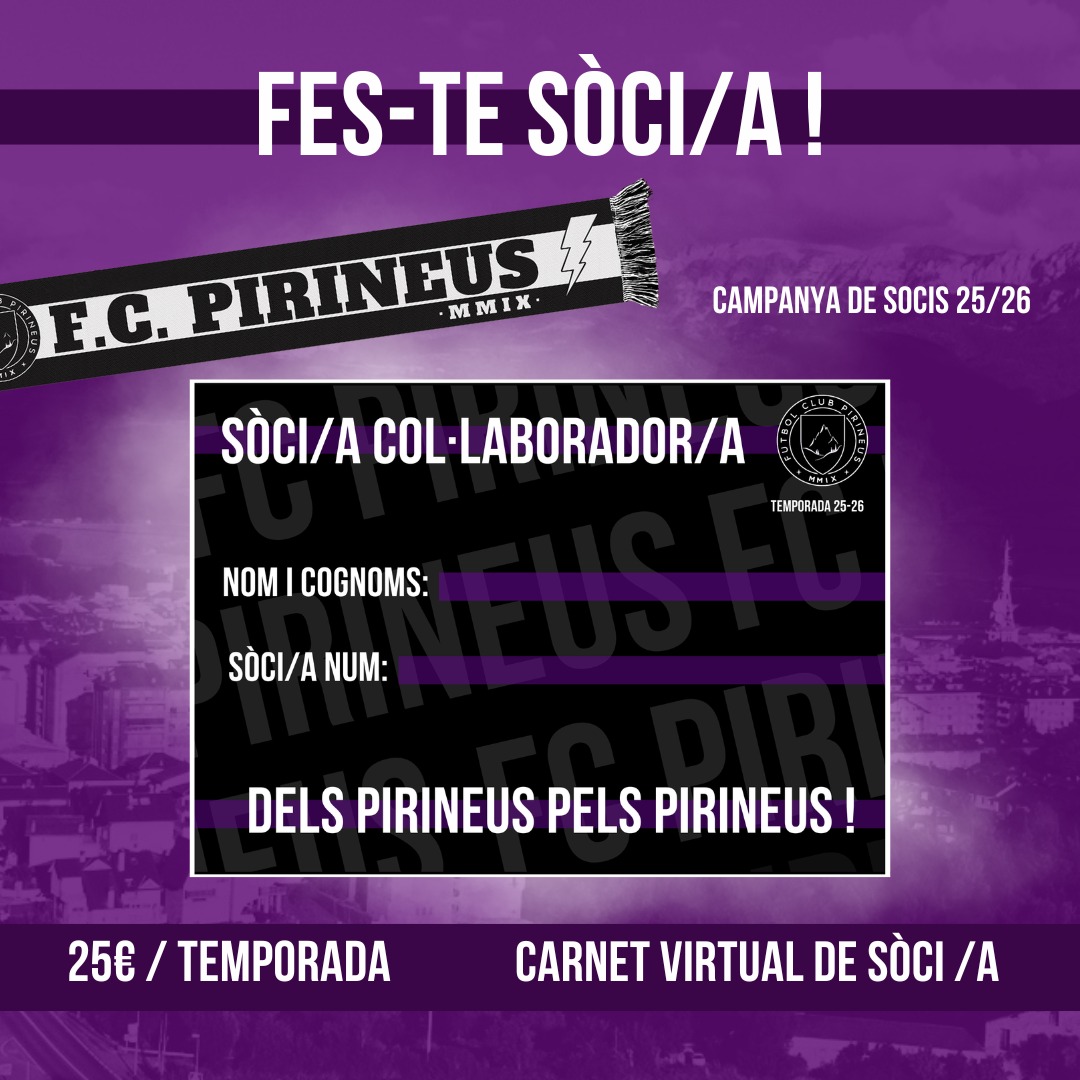 Perquè l'alta es faci efectiva, s'hauran d'abonar 25 euros (en concepte de quota anual) al número de compte ES32 0081 0196 1300 0166 8876 o bé a les oficines del club situades al Camí Ral de Cerdanya, 36 (poliesportiu).